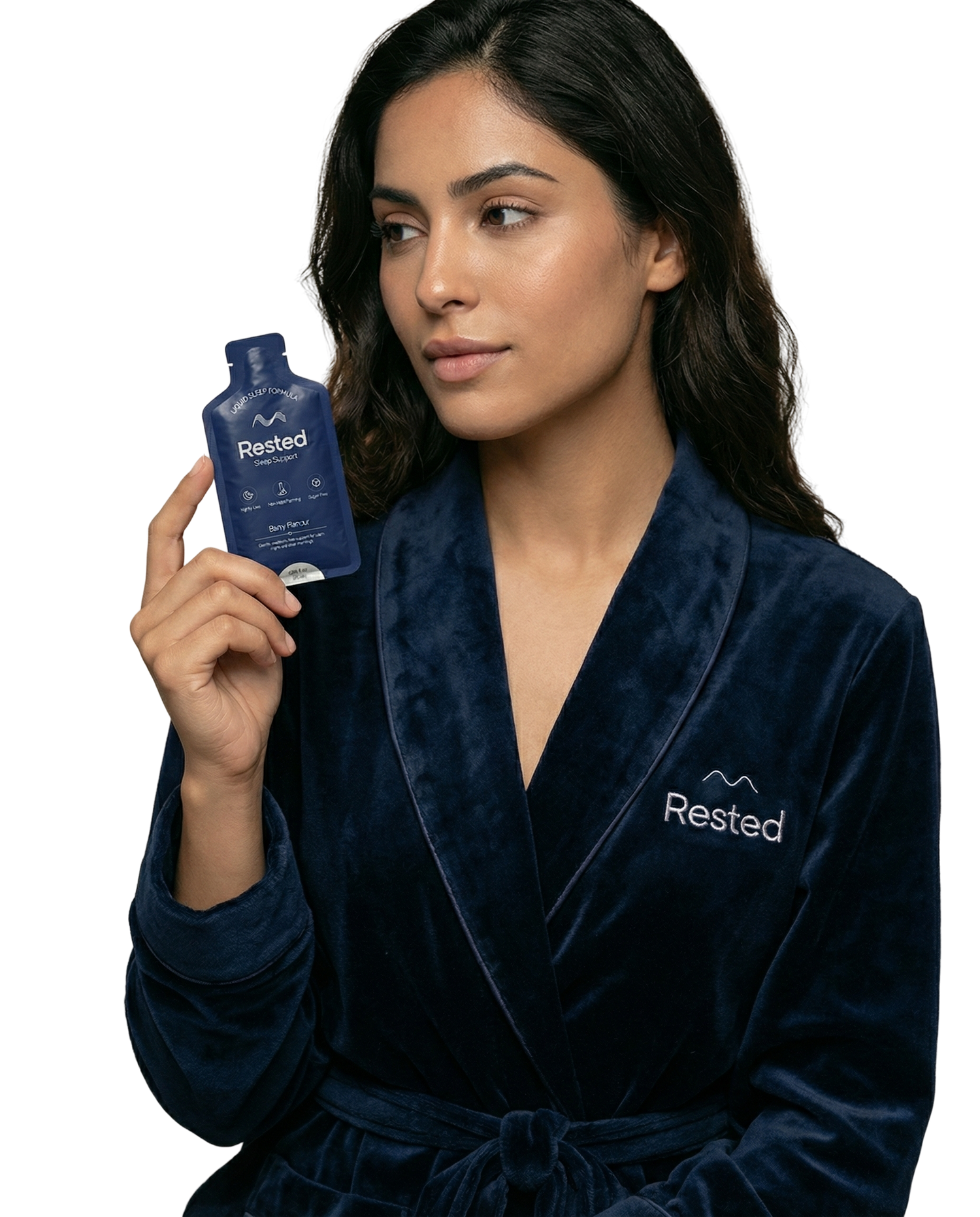 Take Rested about 30–60 minutes before bedtime so your body can begin relaxing and preparing for sleep. This timing helps support a smoother transition into restful, deep sleep.